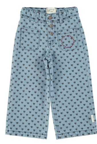 FLARE TROUSERS | DENIM AZUL LAVADO CORAZONES NEGROS