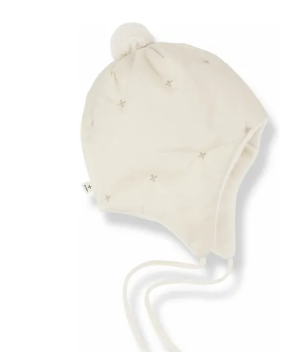 KNITTED BABY BONNET | ROSA CLARO ANIMAL PRINT NEGRO