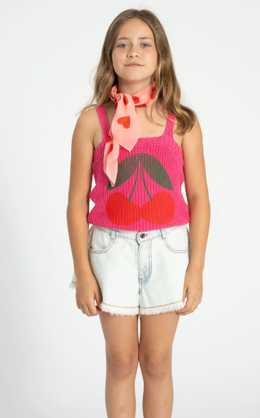 Valorar Knitted top w/ straps | pink w/ cherry print