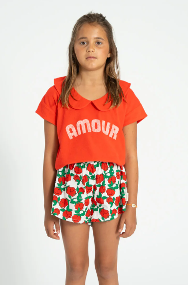 T´shirt w/ peter pan collar| red w/ "amour" print
