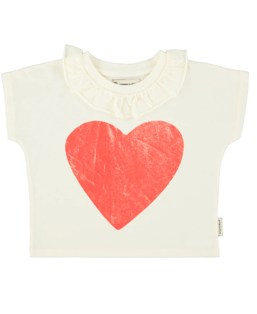 T'shirt w/ collar| ecru w/ red heart print