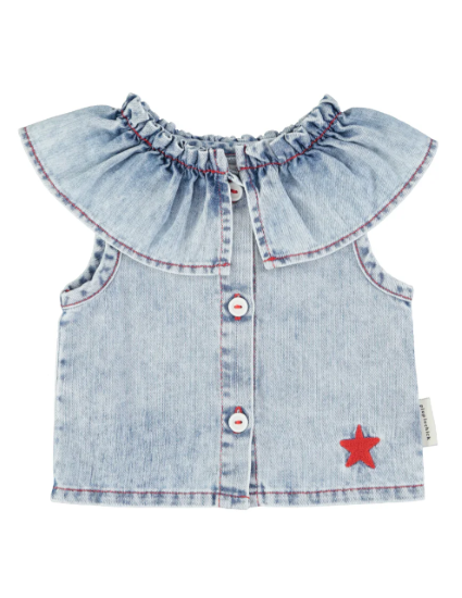 Sleeveless blouse w/ collar | blue light denim