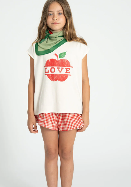 Sleeveless t'shirt | ecru w/ apple print